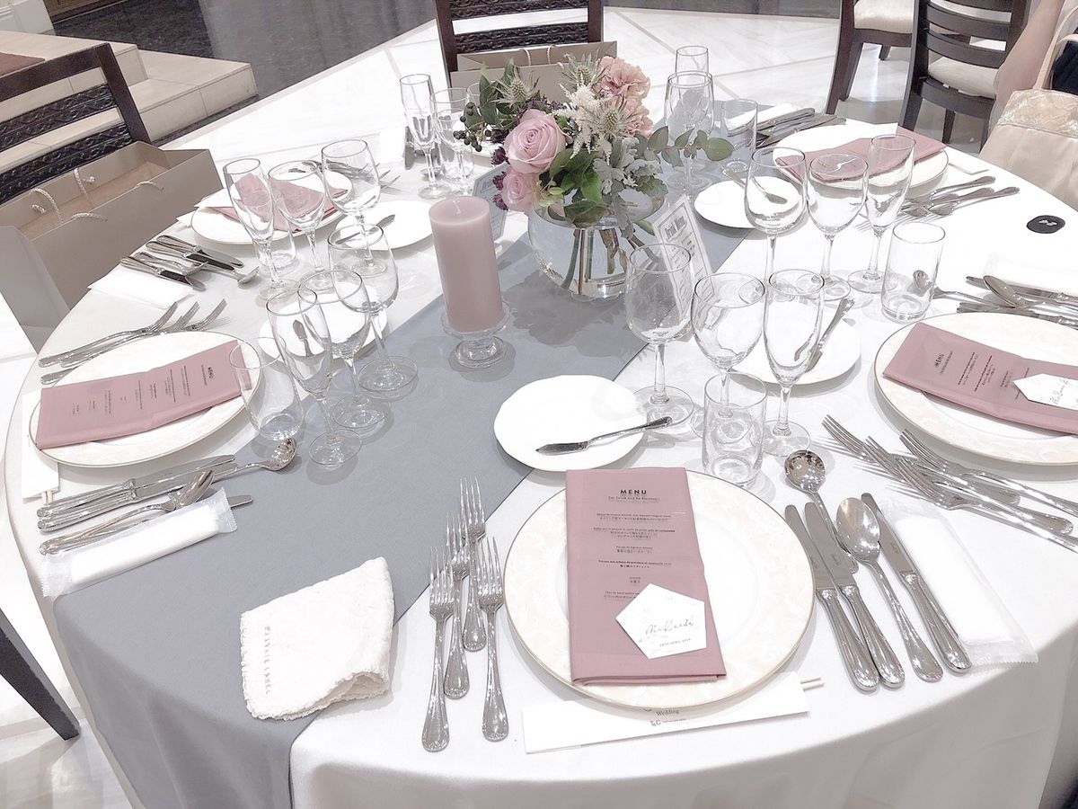 グレーのサテンのクロスはシルバーフォーク&スプーンとの相性抜群。
