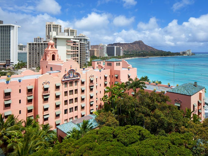 ピンク色の可愛いこちらのホテルは、新婚旅行の聖地とされていて、ワイキキの真ん中・ビーチ沿いに佇んでいるので、お買い物も観光もパーフェクトなホテル♡
