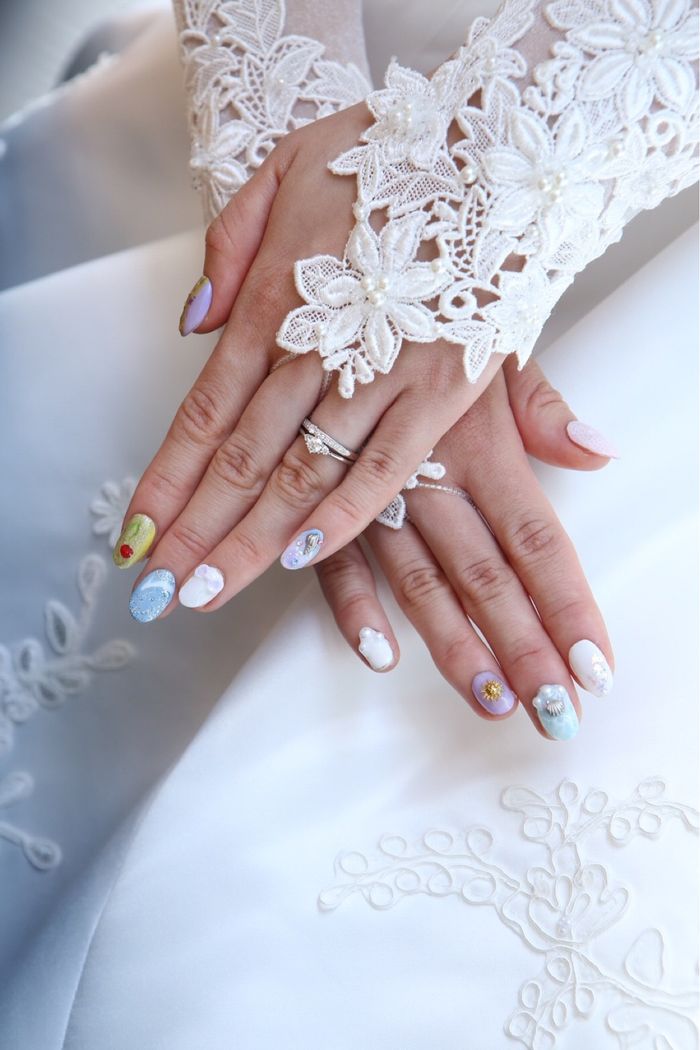 一生に一度の結婚式。婚姻の署名など以外に指先に注目が集まる日でもあります。命一杯個性的なデザインで結婚式を楽しんでください!