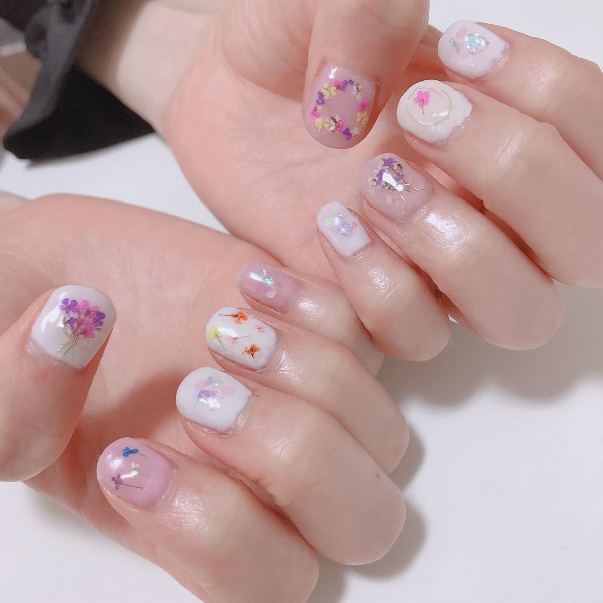 ディズニープリンセスをモチーフにしたカラフルネイル。