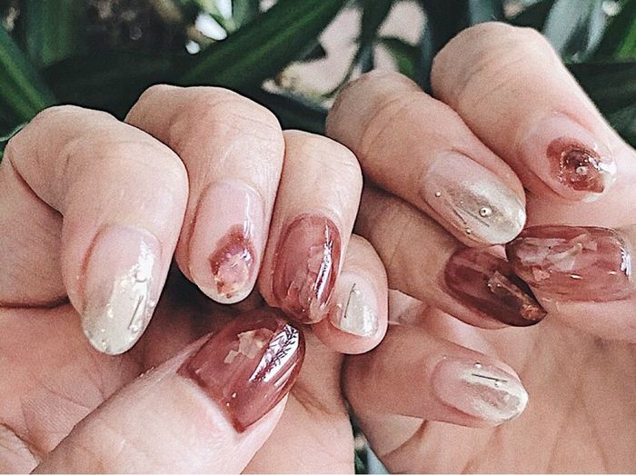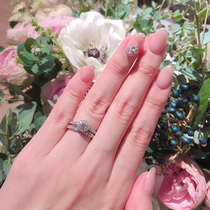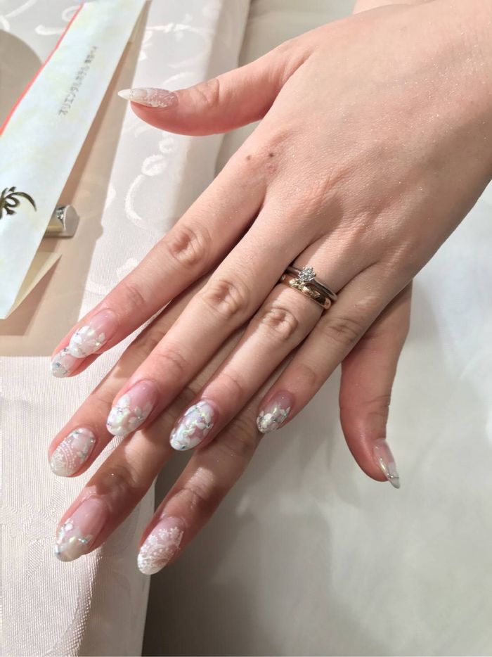 薬指のリングを強調させるネイルをポイントに。薬指を輝かせてくれます。