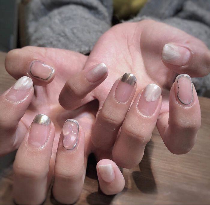 色を使わずにミラーネイルとホワイトで統一させたデザイン。