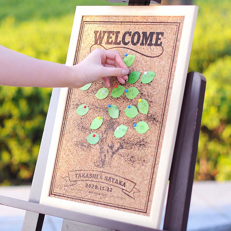 コルクボードを使った寄せ書きゲストブック*ゲストも一緒に楽しむことができます♩