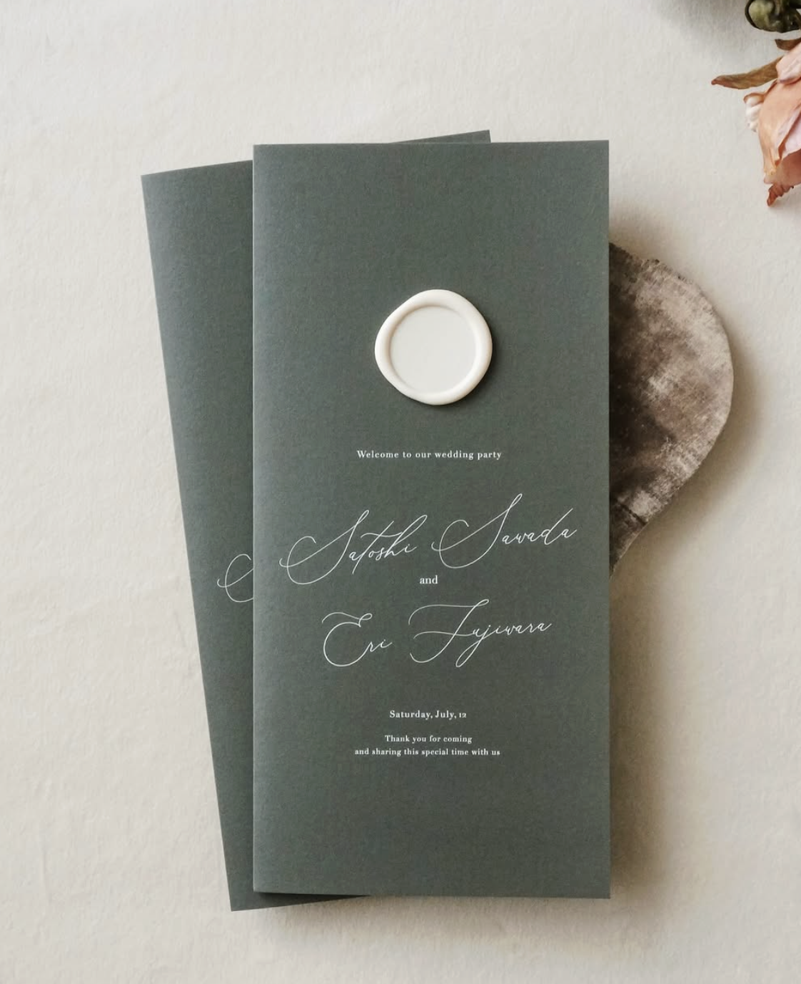 シーリングスタンプを施された席次表にはお洒落さと高級感がありますね♡