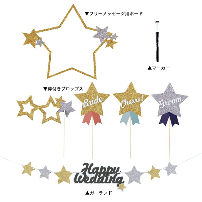 グリッターのスターのフォトプロップスはキラキラがとっても可愛い♡こんなフォトプロップスならウェディングらしい華やかさを演出してくれますね♡