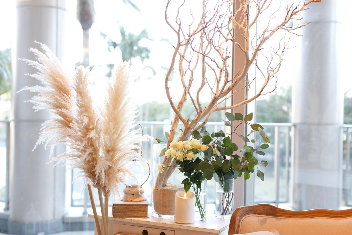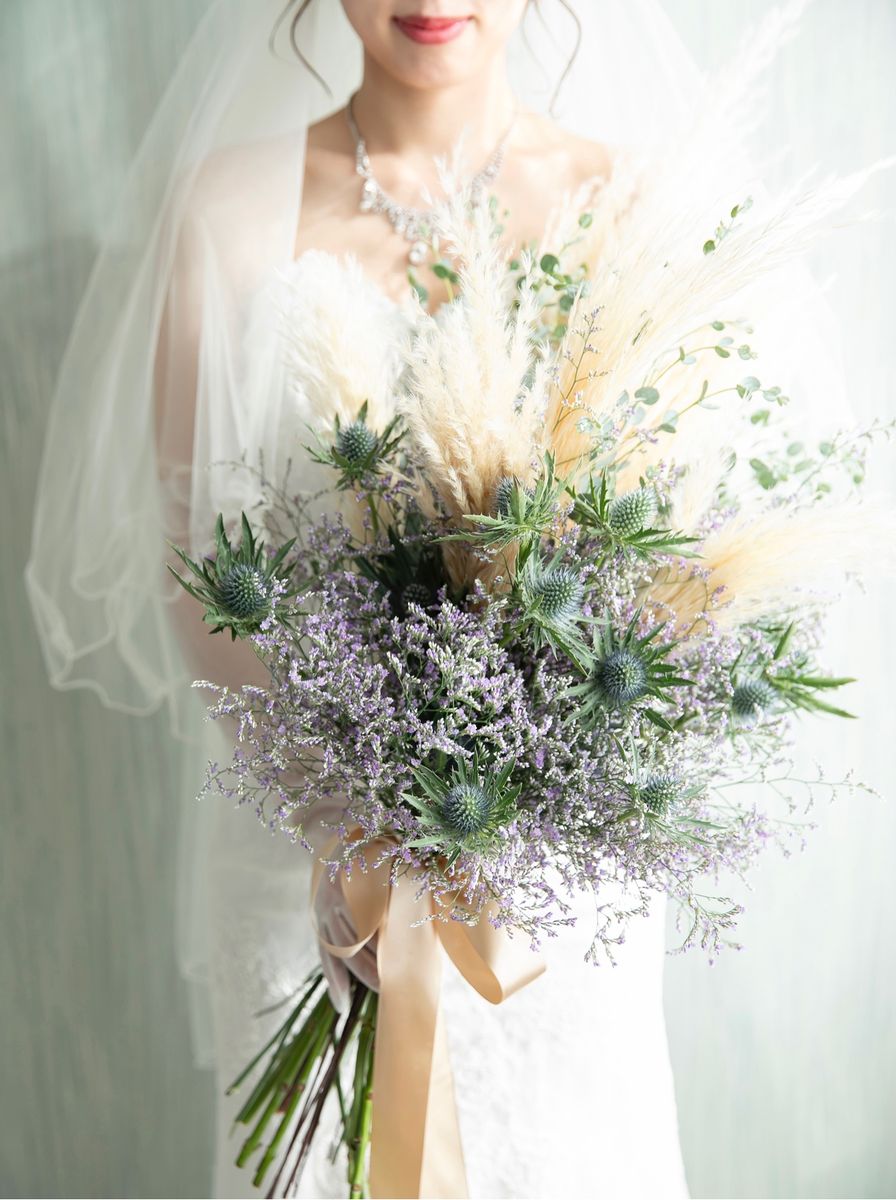 ほわほわとした雰囲気がかわいいパンパスグラスは、細長いシルエットでブーケを大人っぽく見せてくれます*