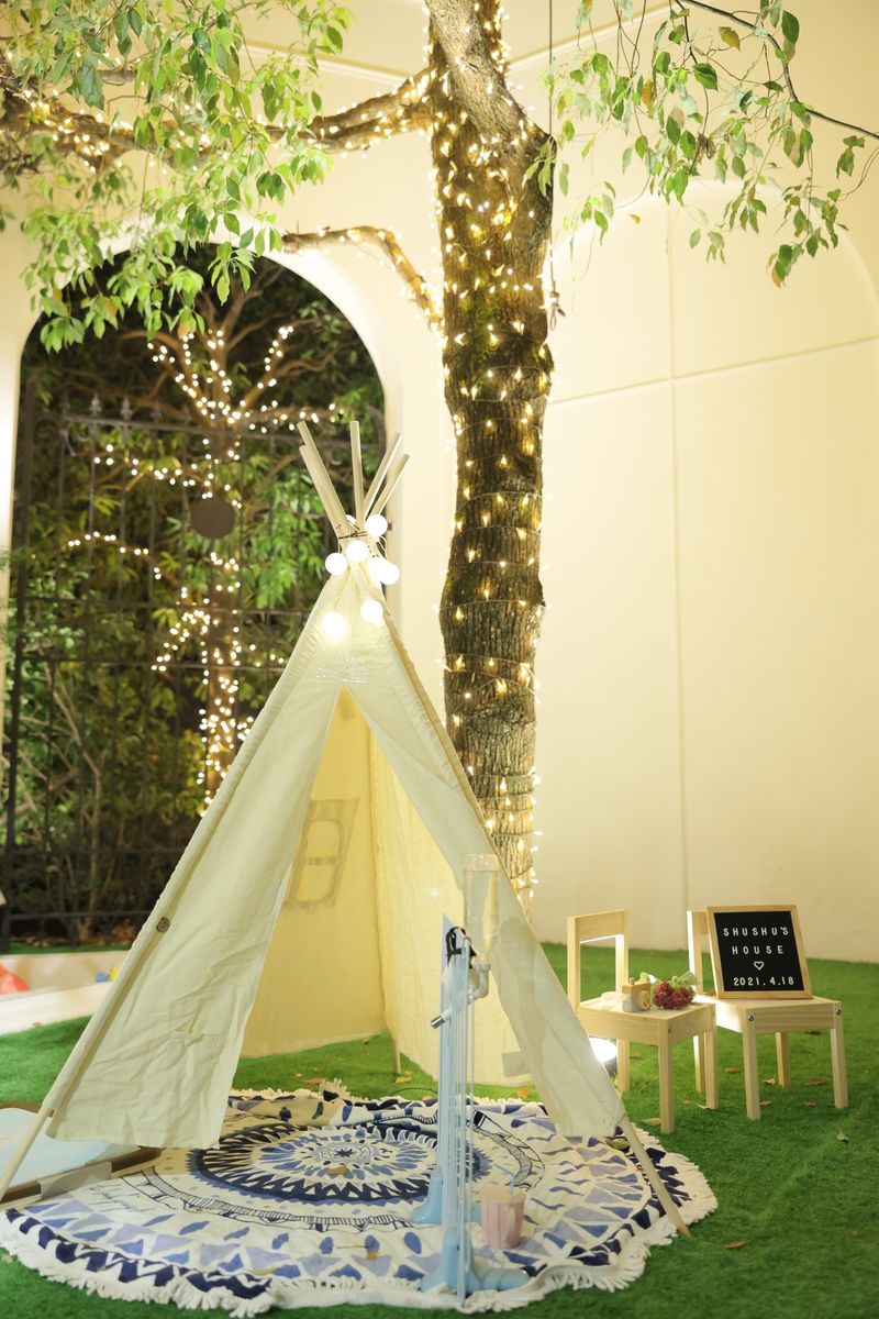 絵本やおもちゃを一緒に置いて、ティピーテントは大人気だったんですって♡
