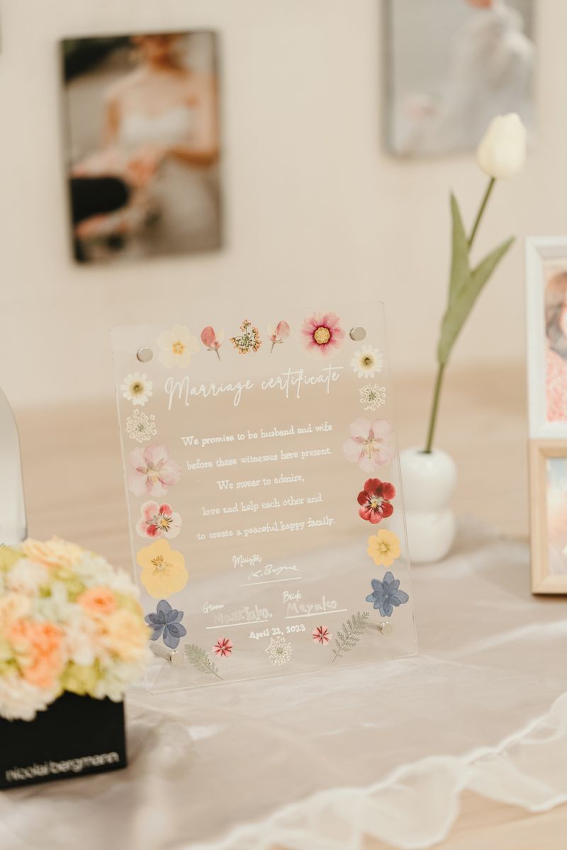 誓いを記した紙にサインするという伝統的な結婚証明書ももちろん素敵で憧れる。