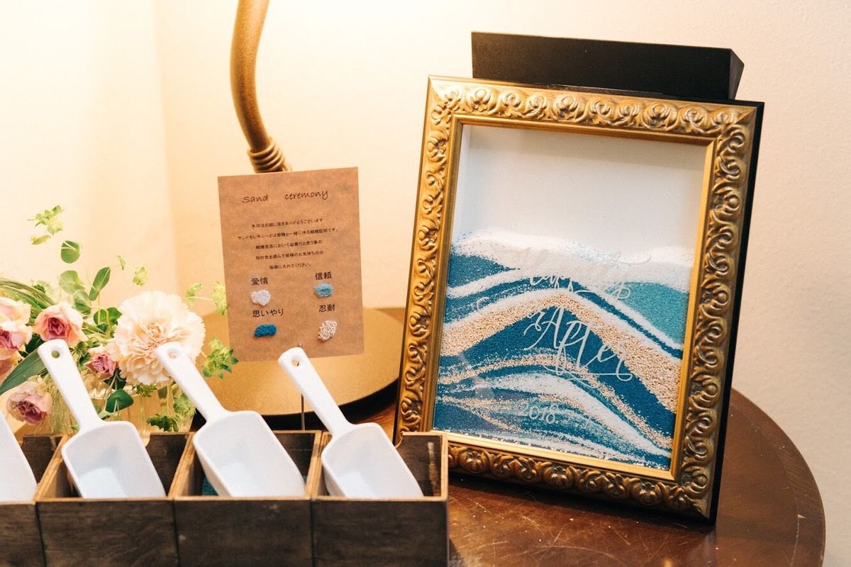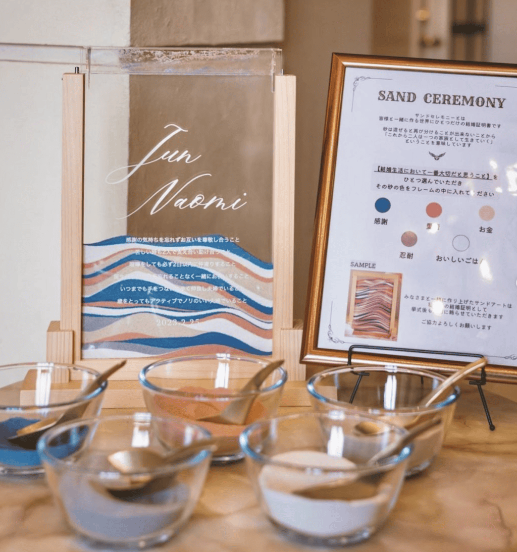一番上まで砂を入れる仕上げは、新郎新婦の共同作業セレモニーにもぴったり♡