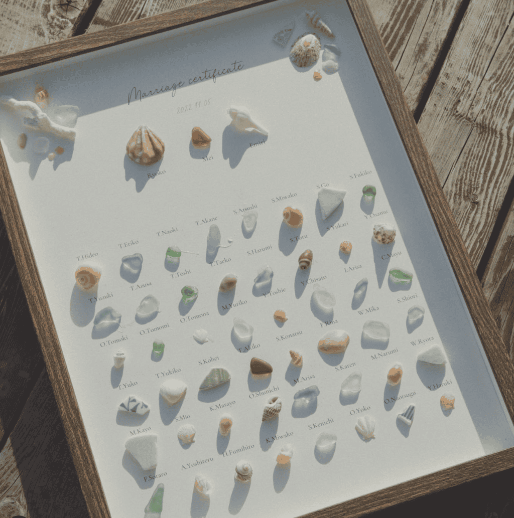 でも、他とかぶらないことがしたい!私たちだけのウェディングを作りたい♡オシャレに作ってずっとおうち飾りたい!という花嫁さんたちにおすすめなのが、紙以外のものでつくる結婚証明書◎