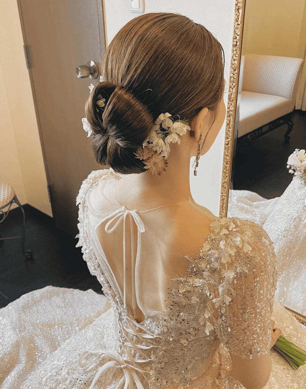 それもそのはず、タイトシニヨンはドレスやアクセサリーとの相性が抜群なんです*